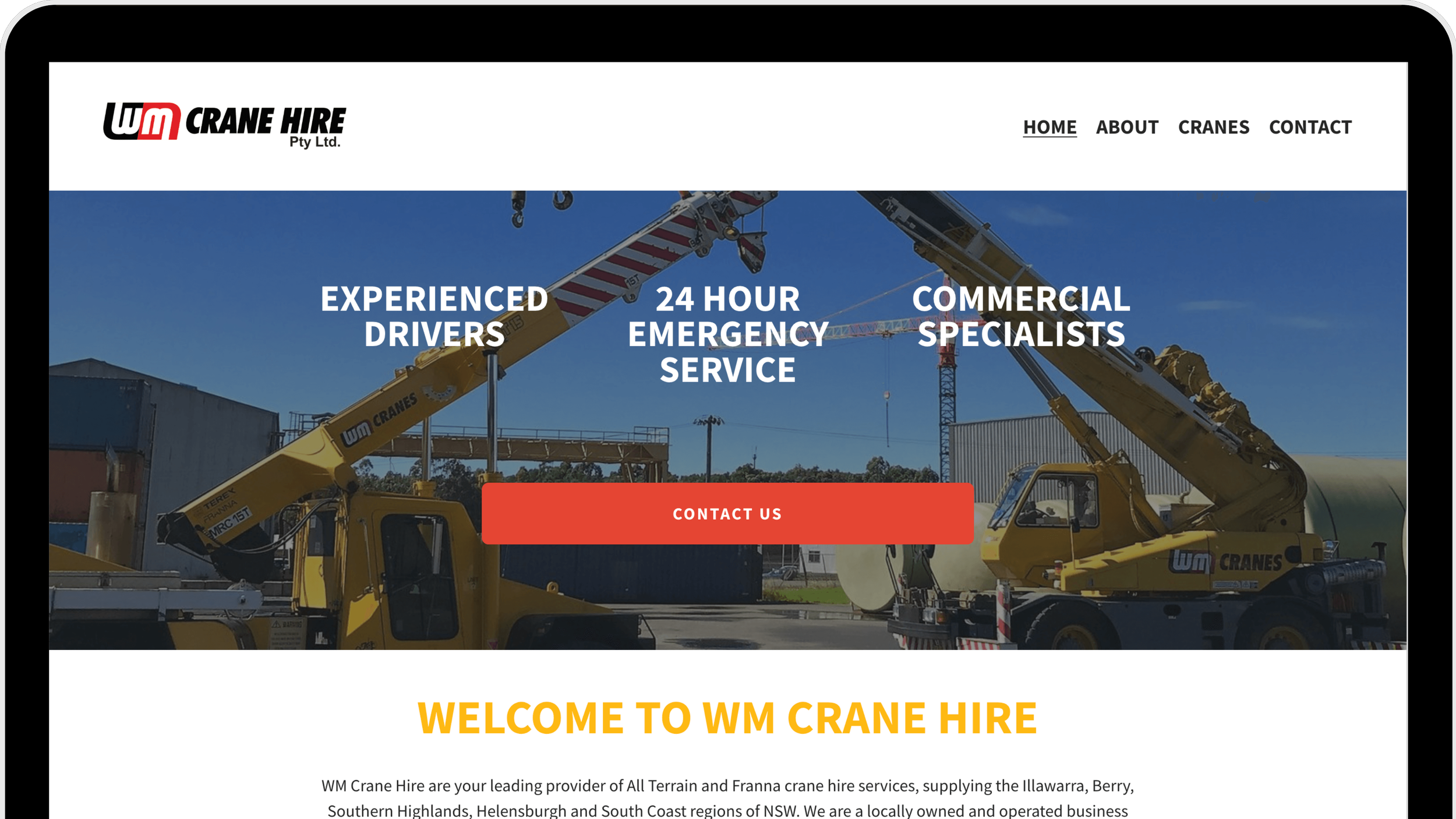 WM Crane Hire are your leading provider of All Terrain and Franna crane hire services, supplying the Illawarra, Berry, Southern Highlands, Helensburgh and South Coast regions of NSW. We are a locally owned and operated business known for our professional, reliable and prompt crane hire services. We guarantee quality workmanship on jobs of all sizes. When you need a lift call WM Crane Hire.